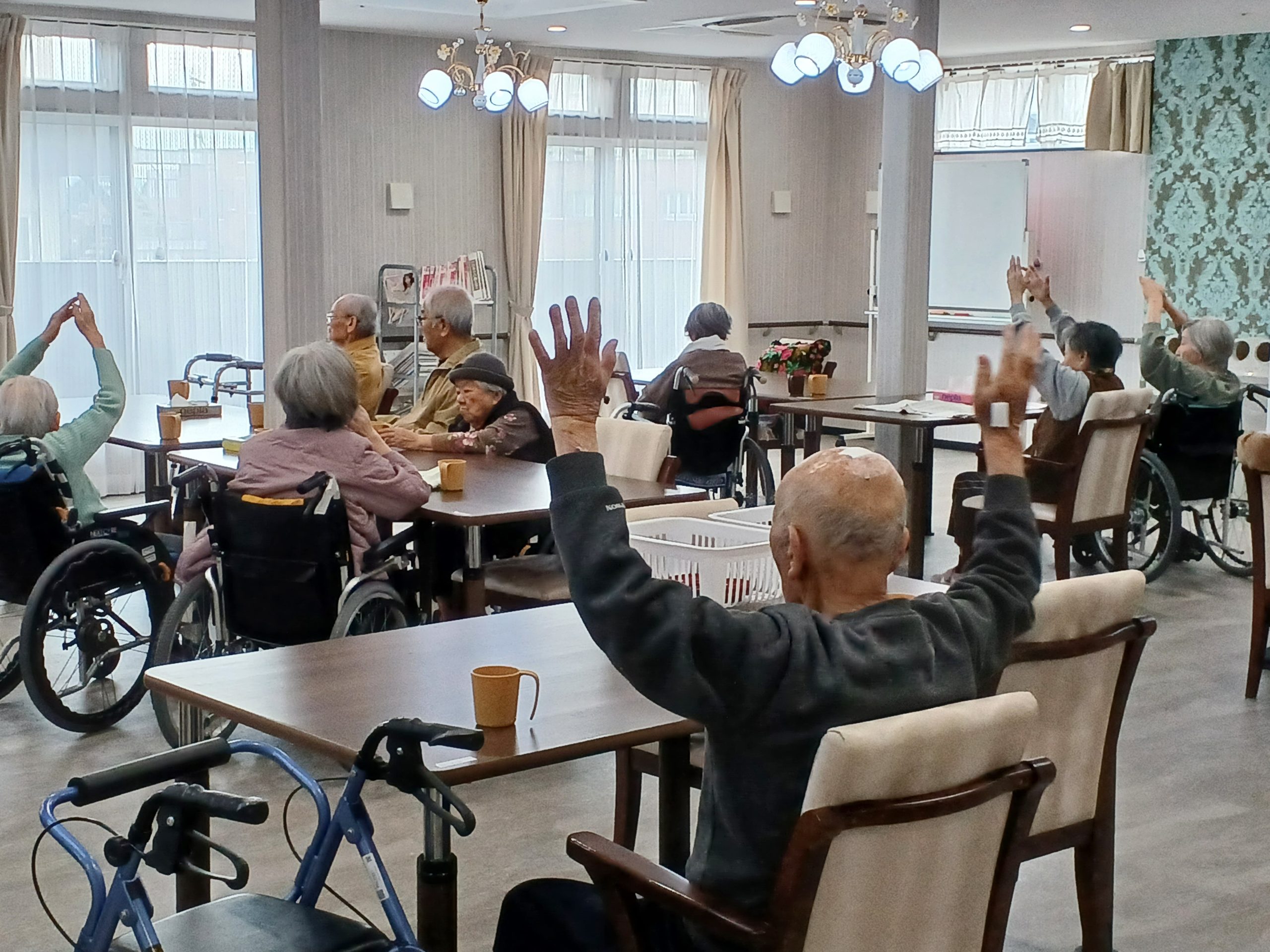 皆様、食事の前の体操をしていました😊