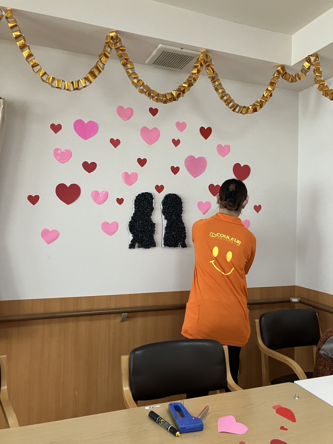 スタッフが可愛いハート達を