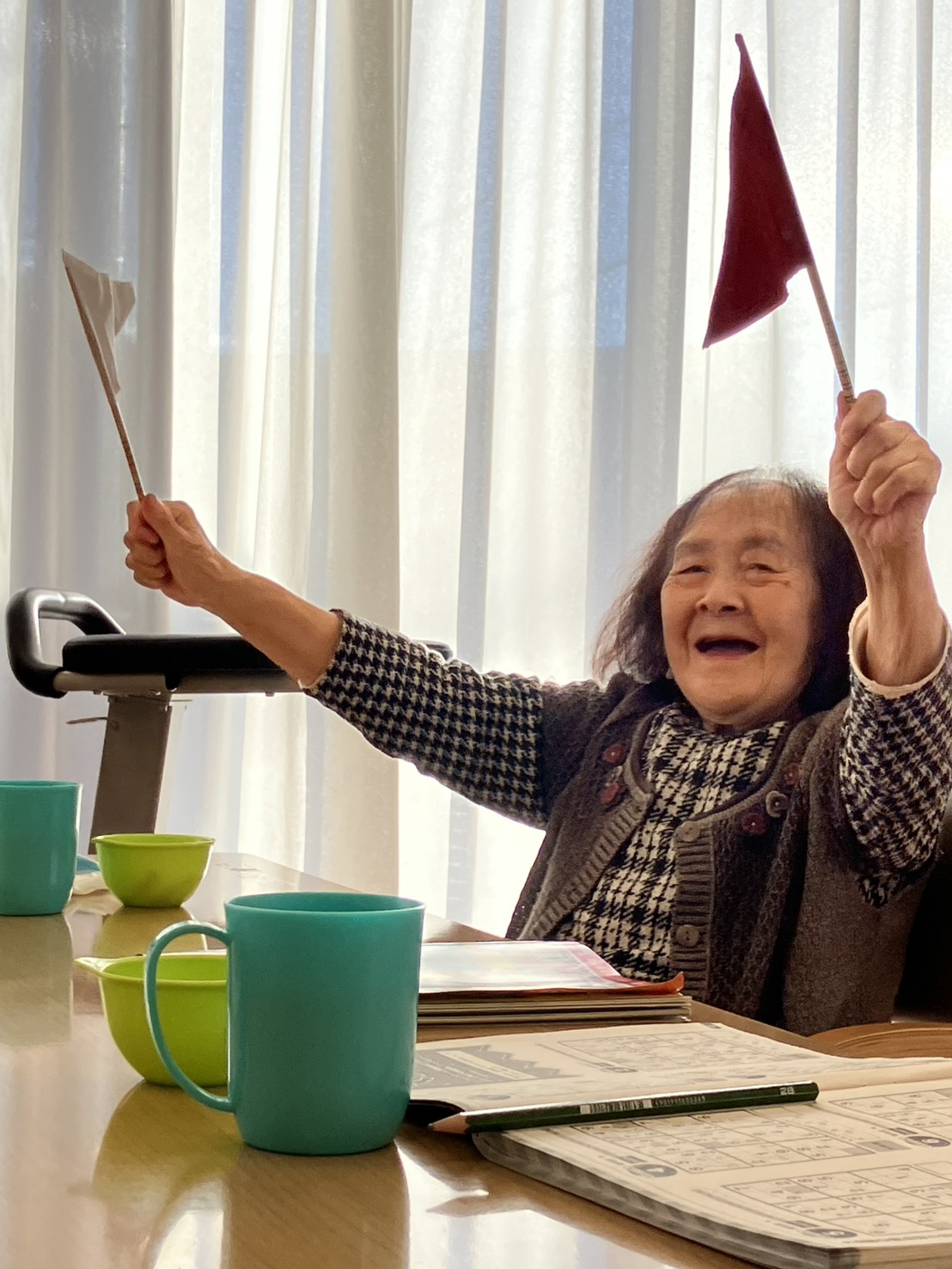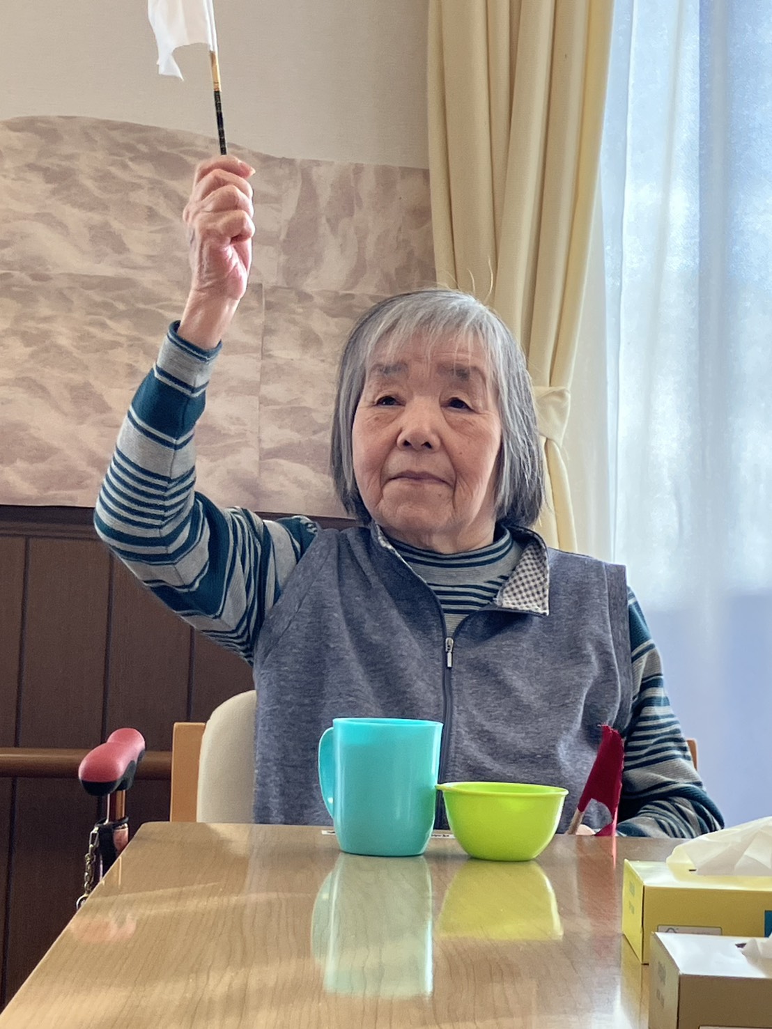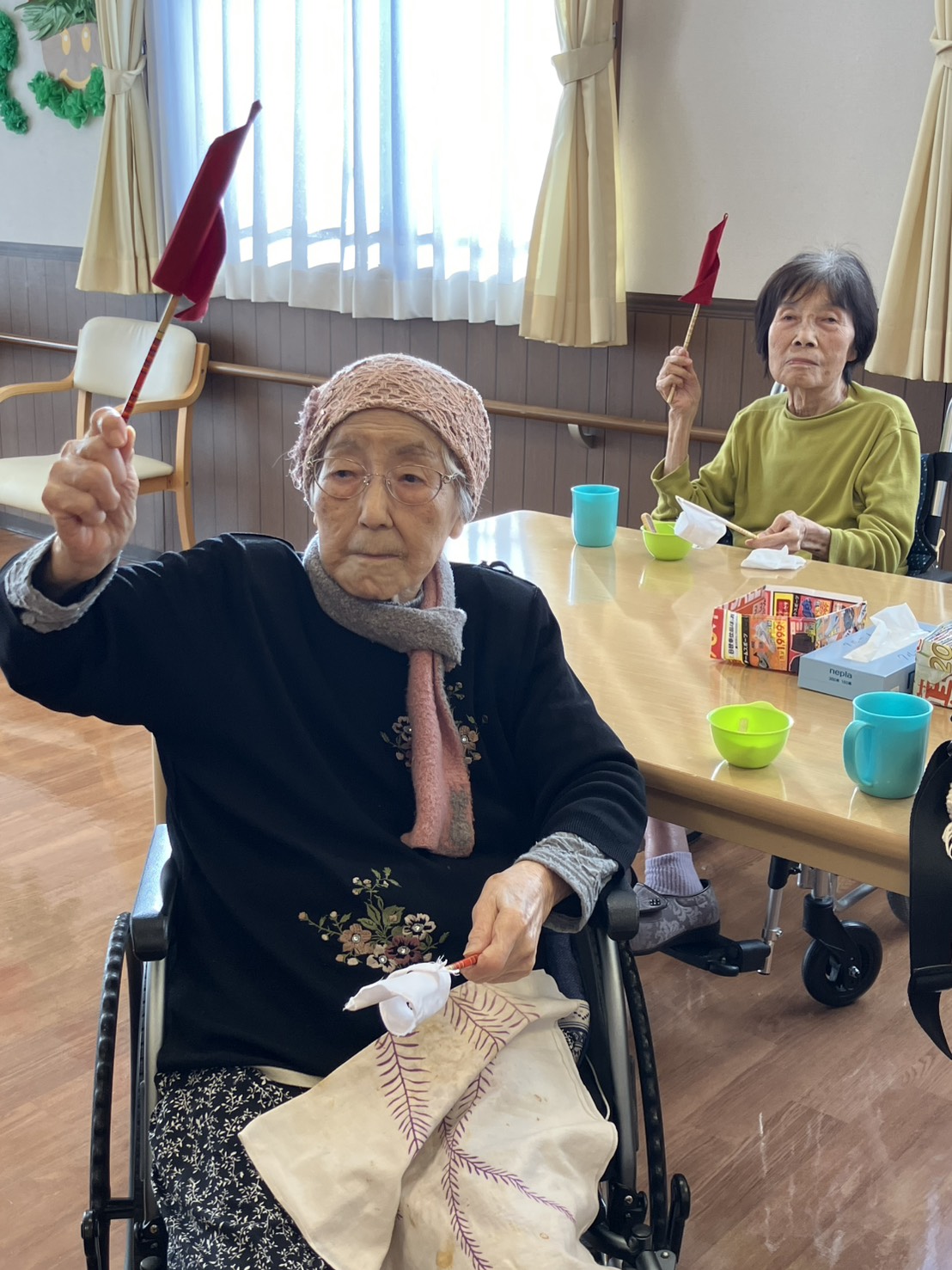 今日は、レクリエーションで行った旗揚げゲームの