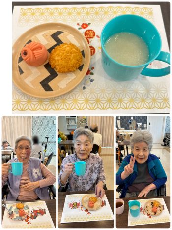 3時のおやつに甘酒と鯛の和菓子をお出ししました😋