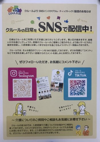 毎日SNSで施設、利用者様の様子やイベントを配信しています❣️